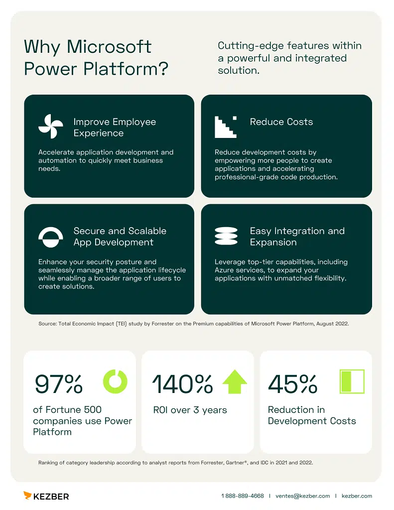 This suite of low-coding tools is transforming the way companies approach their digital transformation. Whether you’re looking to develop custom applications, automate processes or analyze data for strategic insights, the Power Platform is the perfect fit. As a trusted Microsoft Certified Partner, Kezber can help you integrate these technologies into your business reality. We believe that technological innovation should be accessible to all companies, whatever their size or sector of activity.