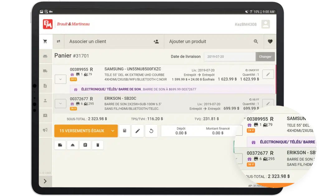 With nearly 20 stores, 2,000 employees, and a 600,000-square-foot distribution center, the Brault & Martineau Group (BMTC) has long dominated the retail furniture market. To modernize and increase sales, BMTC developed a portable digital sales tool connected to the catalog of all its stores. By the end of the project, more than 450 advisors were using this new mobile application daily.