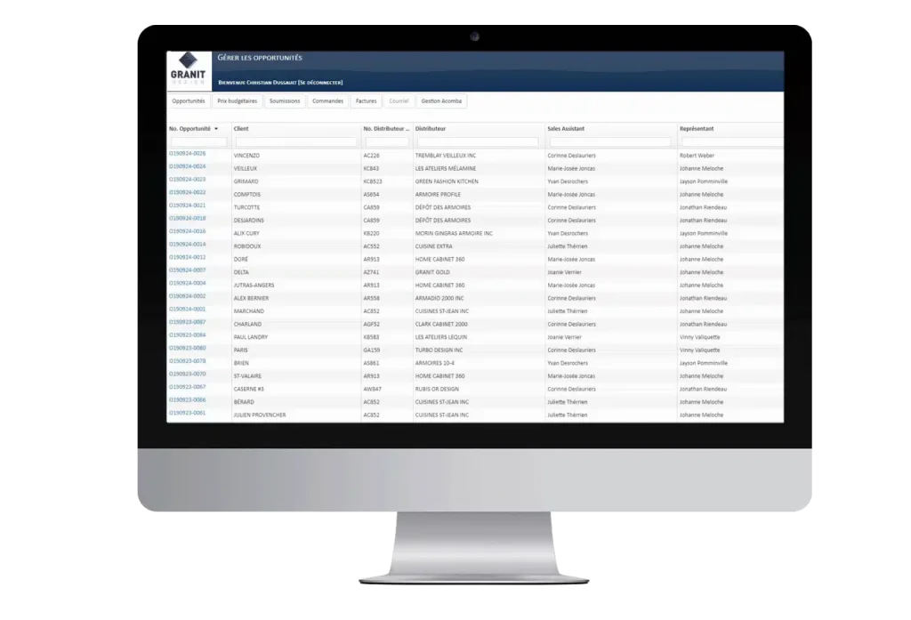 With the new system developed and implemented by Kezber, Granit Design has seen increased productivity across its sales, project management, purchasing, and accounting teams. Additionally, the system enhances tracking, simplifies production management and planning, and reduces production errors. It has also helped minimize material waste by optimizing scrap reuse. More comprehensive than before, Granit Design’s new system provides full access to historical data and generates operational reports.